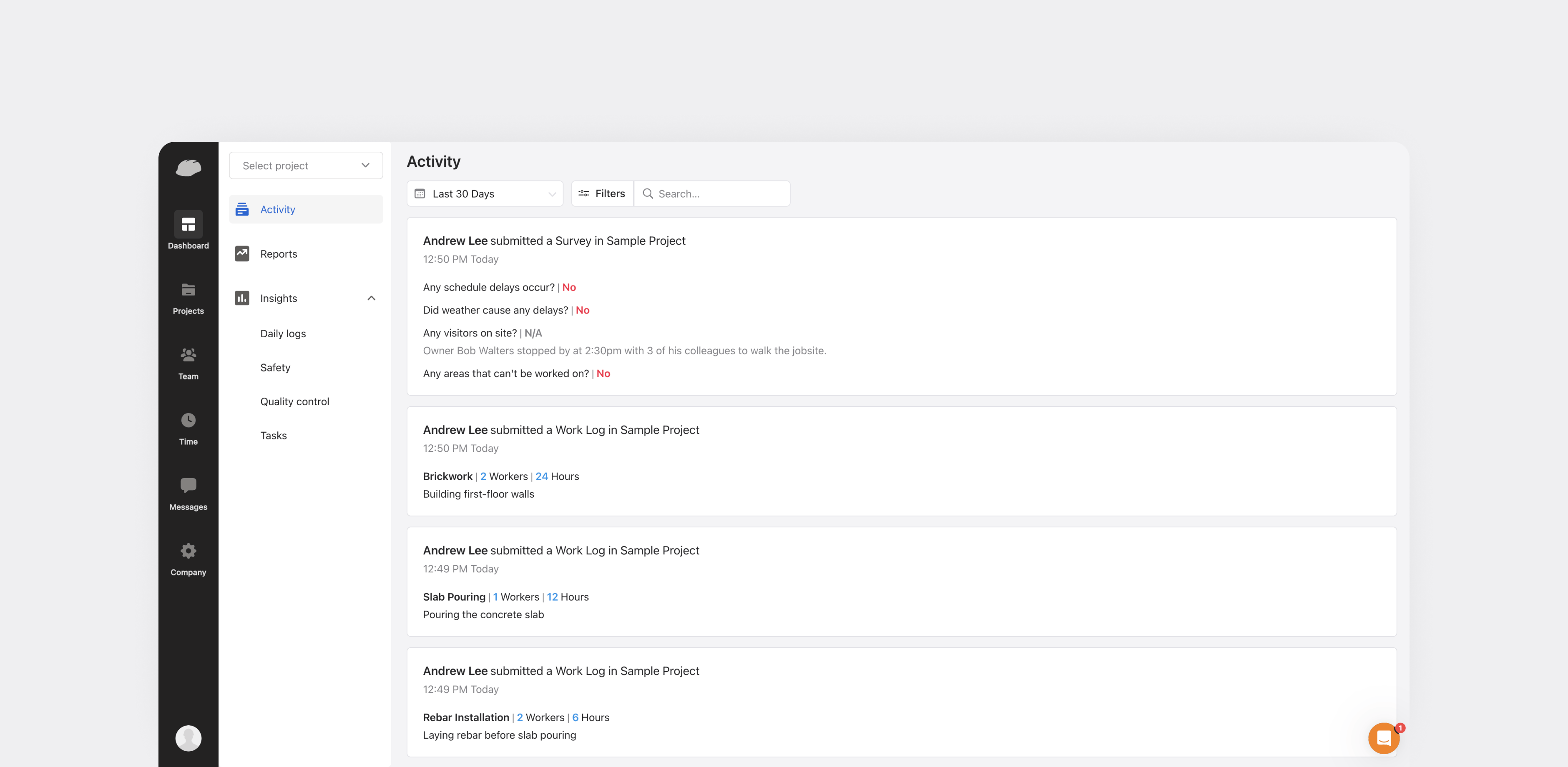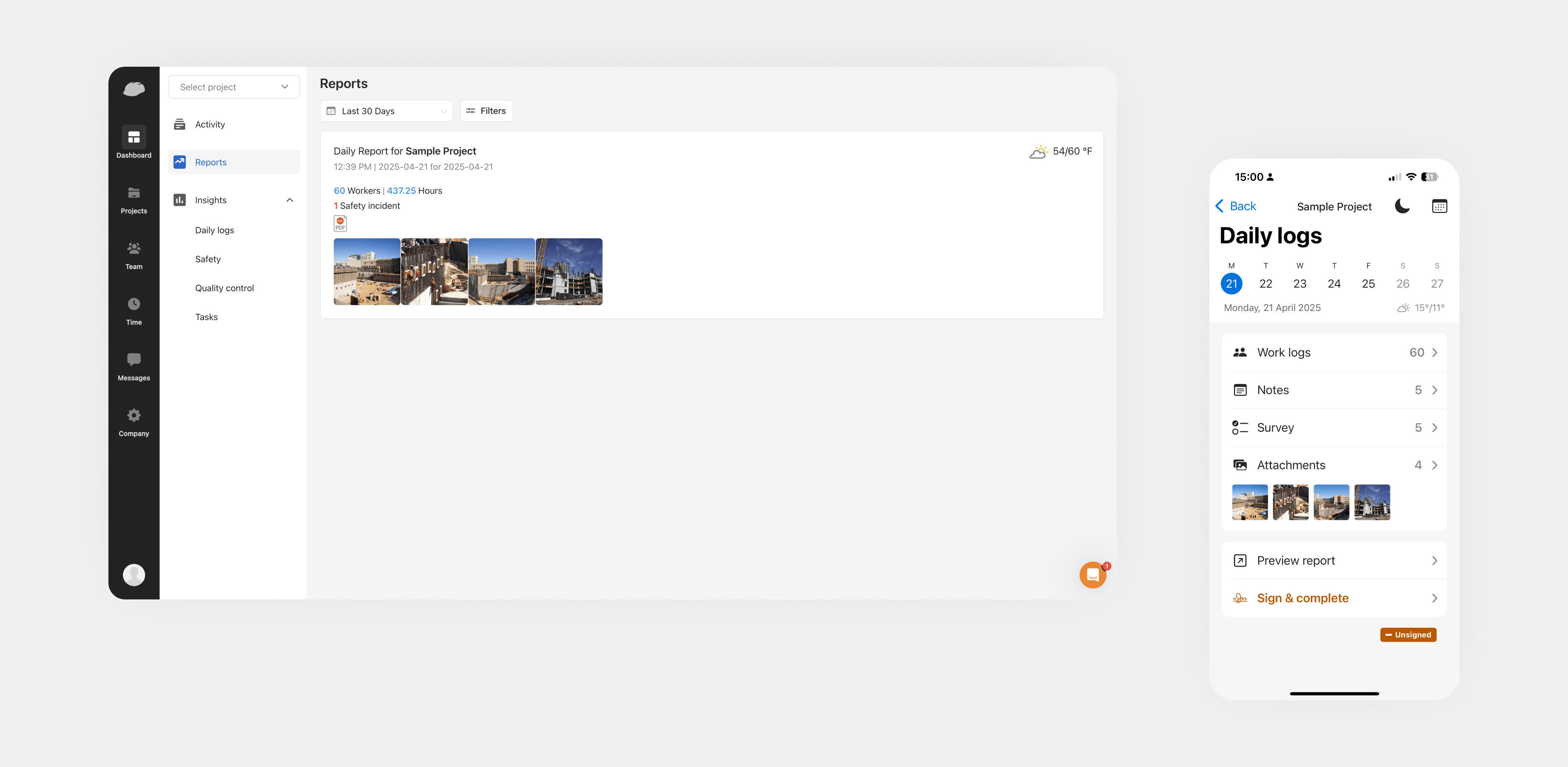 We developed domain-specific features that streamline and automate operations: safety and quality management, document management, time and production tracking, and daily progress reporting. The features help users better manage resources, increase visibility into their allocation, coordinate with subcontractors, and maintain high safety and quality standards on site.